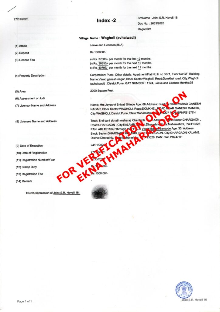 Physical Verification: Registered Rent Agreement (Index 2) of the Ashram Premises